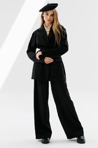 Состав ткани: красный — 100% хлопок; индиго — 70% хлопок, 30% ПЭ.Костюм молодежный состоит из топа и шорт. По низу топа разрезы-бахрома. На полочке принт.