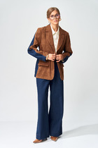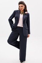 Костюм жилет и брюки из  класической костюмной полоски. Безусловная класика совремееная и всегда привлекает взгляды.Жилет прямого кроя со съёмным поясом,воротник пиджачного типа. Жилет с центральной бортовой застёжкой на три петли и три пуговицы. По боковым швам обработаны разрезы и шлёвки под пояс.Брюки женские прямого   силуэта, из класической костюмной полоски, по переду пояс   со шлёвками, и застёжка на тесьму-молниюи пуговицы, по спинке пояс с эластичной резинкой. Брюки с боковыми наклонными карманами. Брюки со стрелками.