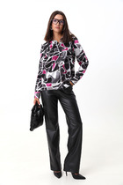 Этот костюм — воплощение сдержанной роскоши и непринуждённой элегантности. Мягкий сатиновый блеск пыльно-голубой ткани создаёт эффект благородства и лёгкости, а свободный силуэт подчёркивает женственность без излишней строгости. Свободный крой с V-образным вырезом, застежка на крупные декоративные пуговицы. Длинные рукава с широкими манжетами обеспечивают элегантную посадку, подчеркивая линию запястья. Ткань струится мягкими складками, создавая драпировку, внутренняя подкладка отсутствует для легкости и естественного движения.  Брюки широкие с мягкими складками по переду и боковыми карманами вблизи боковых швов, подчёркивают лёгкость и свободу движения. Для максимально комфортной посадки по поясу вставлена эластичная резинка по спинке и бокам.