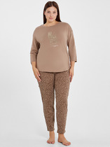 Брюки прямого силуэта, по переду со сгибом, на притачном поясе со шлёвками. Застежка обработана типа «гульфик» на молнию и по краю пояса на петлю, пуговицу. Передние части с фигурными боковыми карманами. Задние части с притачной кокеткой.