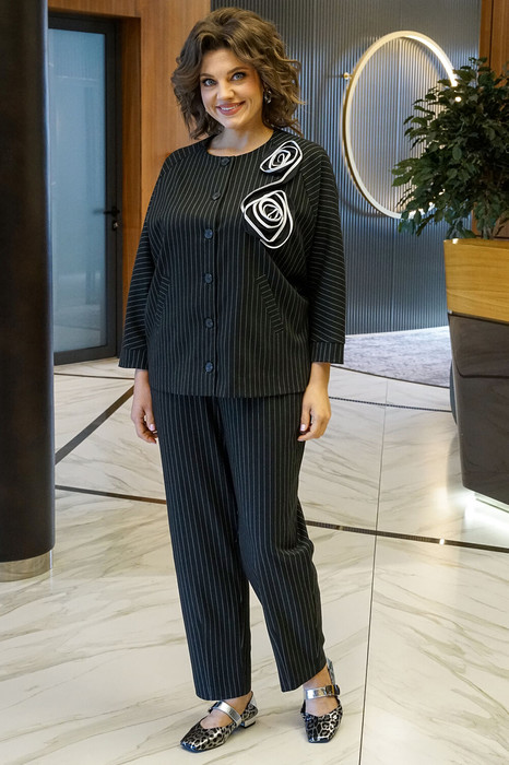 — Костюм ALANI 2414 черная полоска, белая вышивка