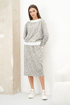 Блузка свободного силуэта, с центрально-бортовой застежкой по переду на петли пуговицы. Воротник отложной стойка. Спинка на кокетке. Рукав длинный на манжете.