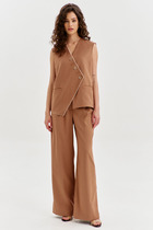 Юбка прямого силуэта дополнена притачным поясом, застежкой на пуговицу и молнию спереди, а также функциональными карманами по бокам и небольшой шлицей для удобства движения.