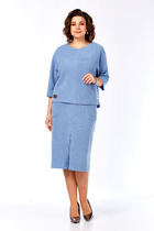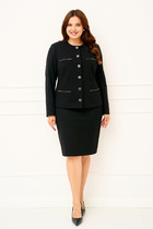 Комплект юбочный 2-х предметный, состоящий из жакета прямого силуэта на подкладке и классической юбки длинной ниже колена на подкладке. Жакет с круглой горловиной и центральной застёжкой на петли и декоративные пуговицы. По полочке обработана нагрудная вытачка, в области груди настрочен клапан, закрепленный пуговицей. Спинка цельнокроеная. Рукав втачной, длинный. Юбка полуприлегающего силуэта, длиной до середины колена. В среднем шве заднего полотнища юбки обработана потайная молния, по низу шлица.