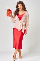 Бренд белорусской женской одежды больших размеров Anastasia представляет чудо- комплект двойку, который подходит для любого типа фигуры (особенно на тип фигуры треуголиник). Он станет отличным дополнением к Вашему гардеробу. Подойдет для повседневной носки (работа, офис, прогулки), так и на торжественное мероприятие, корпоратив.Комплкет женский 2-х предметный (блузка и юбка). Блузка, из двух видов ткани: верх блузочная ткань и масло, в виде туники с цельнокроеным рукавом, по низу рукава идет манжет и завязка. По низу блузы пояс-отделка из "масла". Юбка женская кожаная из вискозы. Представляет собой идеальный выбор для женщин, предпочитающих комфорт и стиль.  Модель карандаша с миди длиной и шлицей по спинке добавляет уникальный акцент вашему образу. Застегивание на молнию обеспечивает легкость и удобство в использовании. Это чудо юбка-корректор  идеально подтянет ваш животик, таким образом подчеркнет вашу талию. Для тех, кто ищет одежду для офиса, школы или подходит большим размерам, эта юбка является отличным выбором. Материал юбки дышащий и натуральный, что делает его идеальным для любого времени года. Для высоких и невысоких, юбка подчеркивает вашу элегантность и грацию. Необыкновенная фактура материала обеспечивает универсальность в сочетании с любыми верхними вещами. Комплект может лекго трансформироваться в платье , достаточно заправить блузку в юбку.  Одежда для женщин больших размеров и не только, по отличным ценам и высокого качества - это Anastasia! ВНИМАНИЕ! при выборе размера, ориентируйтесь на размер юбки. Длина блузки: (50-54)-65 см., (58-60)-69 см. Длина рукава (от горловины): (50-54)-58 см, (56-60)-60 см.  Длина юбки: (50-54)-62 см, (56-60)-64 см