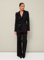 Оригинальный комплект от бренда Anastasia- идеальный выбор для любого случая. Этот комплект сочетает в себе элегантность и комфорт. Комплект женский 2-х предметный (жакет, брюки). Жакет прямого силуэта, на застежку петли и пуговицы. Воротник пиджачного типа, по полочке идут подрезы в шахматном порядке. Плечо спущенное, рукав 3/4 длины, с отложной манжетой которая фиксируется патой. Низ фигурный, спинка цветная. Брюки прямые, пояс на резинке, по бокам карманы. Комплект свободный, удобный. Длина спинки: (50-54)-73 см, (56-60)-76 см. Длина рукава:(50-54)-38 см, (56-60)-41 см. Длина брюк: (50-54)-101 см, (56-60)-105 см