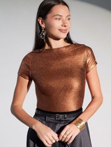 Футболка облегающая из хлопка в рубчик с вырезом лодочка с матовым покрытием мет