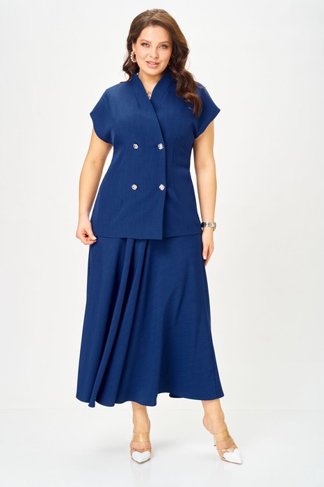 Бренд белорусской женской Anastasia представляет костюм двойку. Костюм женский 2-х предметный (жилет, юбка) из костюмной ткани станет отличным дополнением к Вашему гардеробу. Подойдет для повседневной носки (работа, офис, прогулки). Достаточно дополнить его соответствующими предметами из вашего гардероба: блузка, майка, водолазка, гольф, свитер, лонгслив, свитшот. Или акссесуарами: ремешок или пояс. Жилет полуприлегающего силуэта, со спущенным плечом. Может быть самостоятельным элементом гордерба. Застежка двухбортная. Воротник цельнокроеная стойка. По полочке идет грудовая выточка из бокового шва, по спинке средний шов. Юбка-макси, полусолнце. Пояс отрезной на резинке. По бокам - карманы. Акцентный элемент- золо пуговицы. Благодаря своему крою и фасону костюм подчеркивает женственные формы и скрывает то, что должно быть незаметным. Это повседневный вариант на каждый день для занятий в школе или для офиса, на работу или на прогулку. Наденьте его на деловую встречу, официальное мероприятие, школьное торжество. Модель подойдёт для образа в университет или колледж. Одежда для женщин по отличным ценам и высокого качества - это Anastasia! Добавляете нас в любимые бренды и вы всегда будете в курсе всех акций и новинок! Хороших покупок от «Анастасия». Длина по спинке (48-52)-72см, (54-58)-74 см. Длина юбки (48-58) - 94см.