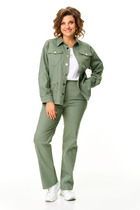 Костюм женский тройка, на любые мероприятия, состоящий из жакета ,брюк и топа. модный соременный. Жакет с воротником пижачного пита, с центральной бортовой застёжкой на 3 петли и 3 пуговицы, полочка с нагрудной вытачкой, с рарзезами по бокам. жакет со сьёмным поясом. Спинка цельная. Брюки женские прямого кроя, на притачном поясе с резинкой.. Передние половинки с карманами в швах. Топ прямого силуэта с нагрудными вытачками и с разрезами по боковым швам. Блузка-топ с регулирующей длину бретелек фурнитурой.