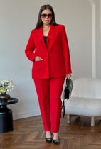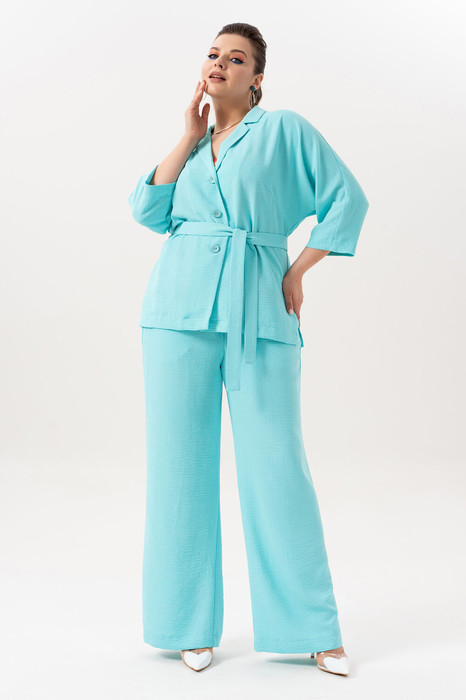 Костюм женский тройка, на любые мероприятия, состоящий из жакета ,брюк и топа. модный соременный. Жакет с воротником пижачного пита, с центральной бортовой застёжкой на 3 петли и 3 пуговицы, полочка с нагрудной вытачкой, с рарзезами по бокам. жакет со сьёмным поясом. Спинка цельная. Брюки женские прямого кроя, на притачном поясе с резинкой.. Передние половинки с карманами в швах. Топ прямого силуэта с нагрудными вытачками и с разрезами по боковым швам. Блузка-топ с регулирующей длину бретелек фурнитурой.