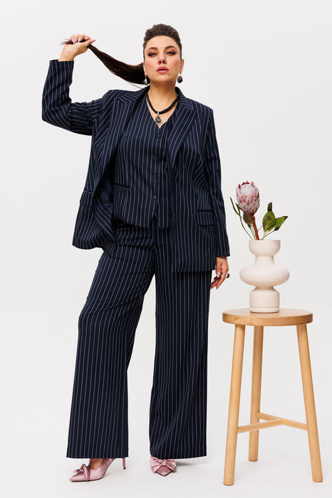 Этот костюм - это шик и универсальность. Жакет бойфренда сочетает в себе элегантность и комфорт, прямые брюки придают вам стройность и уверенность, а жилет завершает образ, добавляя нотку роскоши, брюки на резинке. Все это - актуальная классика, которая никогда не выйдет из моды.