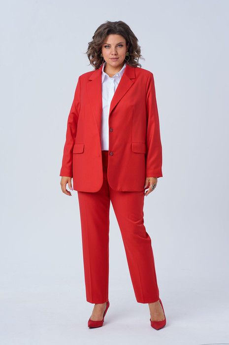 Однобортный жакет оверсайз подчеркивает непринужденный шик и современный стиль. А насыщенный красный цвет костюма не оставит вас незамеченной — готовьтесь ловить восхищенные взгляды!