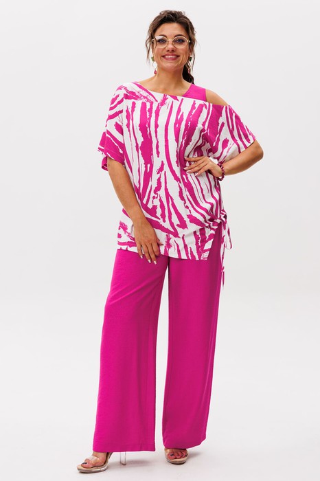Принт "ягодный раф" словно всплеск красок на холсте, превращает костюм в произведение искусства. Каждая деталь продумана так, чтобы блузу и брюки можно было легко комбинировать с другими вещами — ансамбль звучит гармонично как в дуэте, так и соло.