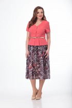 Комплект, состоящий из жакета и юбки. Выполнен из ткани с компаньоном в единой цветовой палитре.