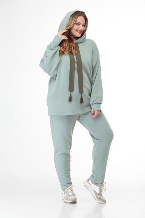 Отличается свободным кроем свитшота-худи, декоративными элементами из ткани-компаньона, свободными рукавами на манжете-перчатке. Функциональные карманы в боковых швах. Удобный и с подкладкой капюшон.