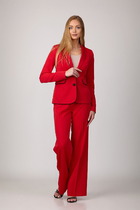 Классический однобортный жакет полуприталенного силуэта, без подкладки. Воротник пиджачного типа с отложными лацканами. По переду центральная застежка на петли и пуговицы, накладные карманы и рельефы. Низ бортов закругленной формы. Спинка со средним швом. Рукав втачной двухшовный длинный.