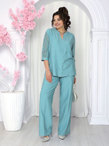 Нарядный женский комплект из гладкой ткани с атласной структурой украсит вас на любом праздничном или торжественном мероприятии.
