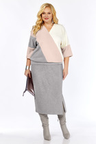 Жакет однобортный полуприталенного силуэта, на подкладке, с плечевыми накладками. Воротник пиджачного типа с отложными лацканами. По переду центральная застежка на петли и пуговицы и прорезные карманы с клапаном, талиевые вытачки и рельефы. Низ бортов закругленной формы. Спинка со средним швом и рельефами. Рукав втачной двухшовный длинный. Жилет прилегающего силуэта с центральной бортовой застежкой на петли и пуговицы, на подкладке. Вырез горловины V-образной формы. Перед - с талиевыми вытачками и прорезными карманами с листочкой. Спинка со средним швом и талиевыми вытачками. Брюки с высокой посадкой, слегка заужены книзу. Притачной пояс со шлевками и застежкой на молнию и пуговицу, по боковым - вставка из эластичной тесьмы. На задних половинках - вытачки. В боковых швах расположены функциональные косые карманы.