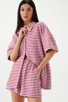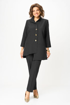 Комплект состоит из топа и брюк выполнен из трикотажного контрастного плотна с геометрическим принтом. Характеристики укороченный топ, широкие бретели, прямой вырез горловины. Длина изделия 41 см. Брюки прямого кроя, пояс брюк на резинке. Длина брюк 109 см.