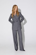 Комплект состоит из джемпера и брюк выполнен из трикотажного полотна с контрастным принтом.Характеристики: джемпер прилегающий силуэт, подплечники, рукав втачной короткий, горловина стойка, застежка по переду изделия - металлическая молния. Длина изделия 51 см, длина рукава 21 см. Брюки прилегающего силуэта, пояс брюк на резинке. Длина брюк 118 см.