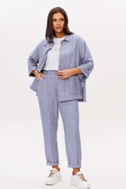 Комфортный комплект состоящий из туники и брюк выполнен из светлого легкого полотна.Характеристики: туника свободный крой, отрезная, широкие бретели. Длина от верхнего края бретели 81 см. Брюки свободного кроя, пояс брюк на резинке, в боковых швах карманы. Длина 113 см.