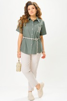 Брюки классические, по форме прямые, клешенные от лиии колена, застежка - потайная молния. Съёмный пояс из основной ткани, обработан пряжкой - в комплекте