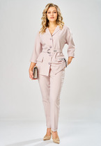 Этот 3-х предметный комплект состоит из жакета, корсетного топа и брюк. Жакет - настоящая жечужина в гардеробе. Небанальный вариант застёжки сбоку на лицевой стороне, и потайной пуговицей внутри изделия придаёт жакету характер, подчёркивает силуэт и линию талии. Жакет выгодно акцентирует фигуру, создавая утончённый и женственный образ. Благодаря декоративным рюшам из вуали, он легко станет центральным элементом образа. Карманы с клапанами. Корсетный топ с открытыми плечами — воплощение чувственной элегантности. Открытые плечи подчеркивают линию шеи и ключиц, а корсетный крой создает безупречный силуэт. Роскошный силуэт и акцентная баска делают его идеальным выбором для особенного вечера. Также топ отлично вписывается в повседневные образы. Брюки станут глотком свежего воздуха среди широких силуэтов и брюк палаццо. Их облегающий крой подчёркивает линию бедёр и тали, а затем изящно расклешается от колена.Такой фасон позволит скорректировать фигуру и подойдёт для строго дресс кода. Вертикальные линии по центру брючин вытягивают силуэт и удлиняют ноги. Застёжка классическая - молния и пуговица в цвет изделия.