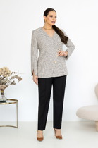 Костюм состоит из 2-х предметов одежды: жакета и брюк. Выполнен из костюмной ткани стильного дизайна в полоску.