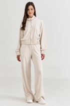 Брюки свободного силуэта прямые, с двумя верхними боковыми функциональными карманами. Высота сиденья классическая. Застежка центральная на молнию и петлю с пуговицей на поясе.