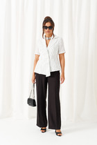 Брюки классические, свободные с боковыми подрезами, имитирующими карманы.