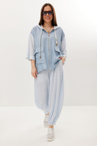 Женский легкий костюм из вискозной ткани, любимые и удобные юбка-брюки, свободная и непринужденная блуза. Созданный в расслабленном крое с подчеркнутыми деталями, костюм позволит чувствовать себя комфортно и уверенно.