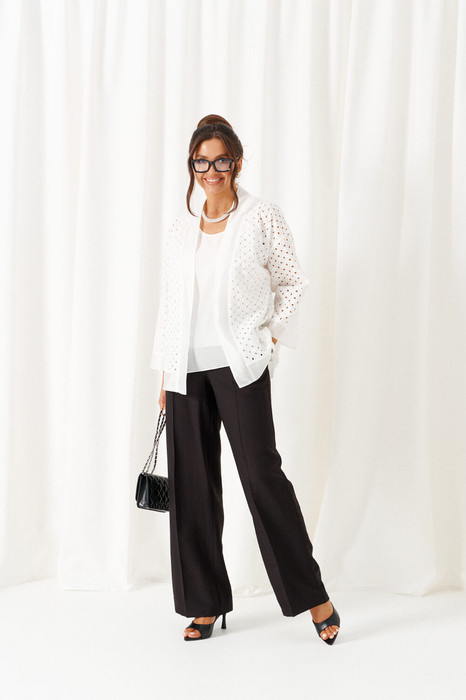 Брючный комплект в комбинации роскошного льняного полотна с эффектным шитьем не останется незаметным в весенне-летнем сезоне!