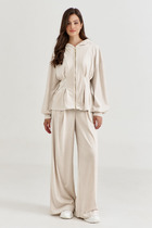 Юбка с фигурным разрезом по низу, который создает комфорт при движении. Пояс не широкий, притачной на эластичной резинке.