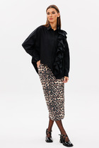 Комплект женский, 2-х предметный, состоит из жакета и и брюк. Жакет женский удлиненный, из текстильной ткани, на подкладке, полуприлегающего силуэта с центральной бортовой застежкой на пуговицы до линии перегиба лацкана. Спереди рельефные швы от плечевого шва, отрезной бочок и карман с клапаном. Спинка с рельефами от плечевого шва. Рукав втачной, двухшовный, по низу рукава обработана шлица на петли-пуговицы. Воротник пиджачного типа. Длина по спинке 66 см, длина рукава 62 см.Брюки прямые,классические, с заутюженными стрелками,по переду обработаны карманы с отрезным бочком,застежка на тесьму-молнию и 1 пуговицу.На задних половинках обработаны вытачки и имитация карманов с листочкой, пояс в брюках притачной. Длина брюк от талии по боковому шву 100 см.