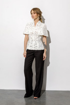 Этот комплект сбалансированный ансамбль для современной деловой женщины. Мы объединили две вещи, которые составляют основу стильного и практичного гардероба. Верх: блуза прямого кроя из нежного текстиля. Рукава 3/4 с манжетами и отложной воротник дарят образу лёгкость и утонченность. Центральная застежка на пуговицы и боковые разрезы добавляют практичности. Длина по спинке 74 см, длина рукава 45. Низ:Брюки-палаццо, модель идеального кроя, создает изящный силуэт и невероятный комфорт. Скрытые карманы и фасон с высокой талией делают их одновременно стильными и практичными. Длина брюк от талии по боковому шву 103 см.