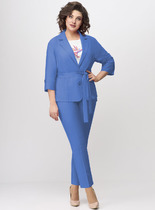 Комплект женский трехпредметный, состоит из кардигана, блузона и кюлот. Кардиган без застежки, рукав втачной 3/4 с притачным довязом. Длина кардигана 83 см. Блузон двухслойный без рукава на широких брителях. Кюлоты на резинке с карманами в боковых швах и на подкладке. Длина кюлот 100см.