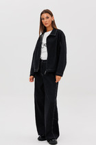 Костюм женский двух предметный, свободного силуэта. Блузка двухслойная, рукав втачной. Шорты на подкладке, пояс на резинке, в боковых швах карманы.