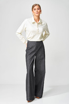 Брюки свободного силуэта, верх брюк на поясе с резинкой.