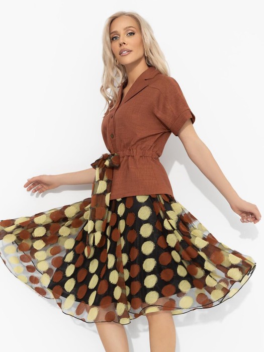 Состав: Костюмная ткань «лерисс», сетка горох, трикот, подклад (85% п/э, 10% вискоза, 5% спандекс)