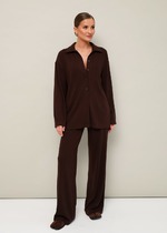 Комплект женский состоит из рубашки и платья. Платье длинное, свободного кроя. Спинка со среднем швом, разрезом, талиевыми вытачками, 2-мя складками по низу. Перед с нагрудными вытачками и складками по низу. Карманы обработаны в боковых швах. Низ платья по бокам собран на резинку. Рубашка совбодного кроя с центральной застежкой на 5 петель и пуговиц. Спинка с округлым подрезом и отделкой в ивде надписи. Перед по низу фиксируется кулисой и завязками. Воротник на стойке с обработанной горловиной . Рукав втачной, одношовный со спущенной линией плеча. По низу рукава манжет с застежкой.