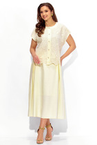 Комплект брючный состоит из блузы и брюк-кюлотов. Блуза свободного кроя с запахом, застегивается на завязки в области талии. Спинка сскулисой и резинкой по талии. В боковых швах обработаны разрезы. Проймы со спущенной линией плеча. В качестве девора брощь в области талии. Брюки-кюлоты свободного кроя с запахом спереди и сзади. Пояс притачной на резинке. Внутри по бокам брюки с разрезами.