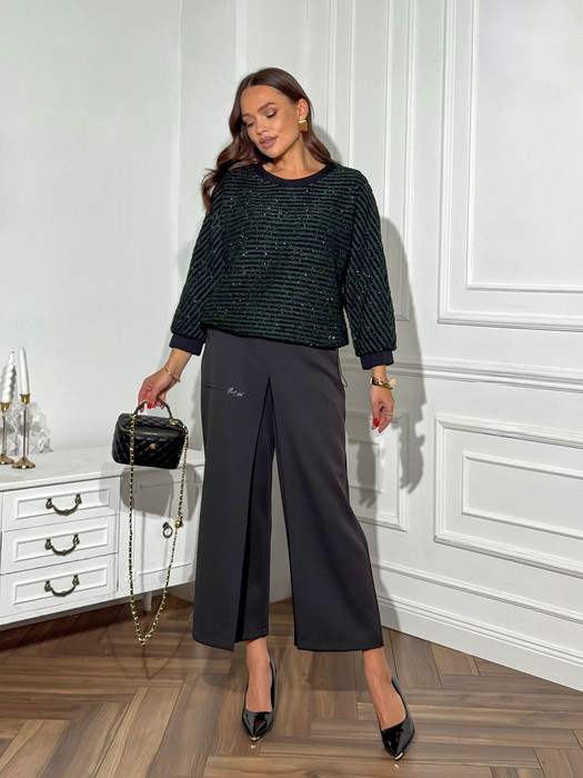 Состав: Джемпер- ПЭ-95%; Спандекс-3%; Люрекс-2%; Брюки- Вискоза-55%; ПЭ-41%; Спандекс-4%;