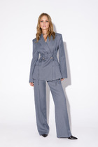 Размер 50: Джемпер: ОГ-134, ОТ-124, ОБ-124, ширина рукава на уровне ОП-24, ширина рукава на уровне низа-17,5, длина рукава цельнокроенного с планкой-48,  длина изделия спинки по центру-70. Брюки: ОТ в собр.-72, ОТ в раст.- 112, ОБ-116, длиа изделия по боковому шву с поясом-100.