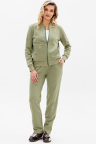 Костюм женский состоит из жилета и брюк. Жилет выполнен в классическом стиле приталенного кроя, по полочке жилета расположены таллиевые и нагрудные выточки, на груди расположены накладные карманы с клапаном. Горловина обработана плосколежащим воротником. По полочке изделия так же расположена планка с застежкой петли-пуговицы. Брюки костюм классического кроя на притачном поясе с резинкой в боковых швах. В боковых швах расположены карманы. застежка молния на гульфике и петля- пуговица.