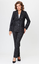 Костюм женский 2хпредметный состоит из жакета и брюк, Жакет полуприлегающего силуэта  выполнен из костюмной ткани, по полочке жакета расположена накладная деталь с  функциональным прорезным карманом "рамка", и декоративные фальш-карманы в области груди. Рукав втачной длинный. горловина обработана плоско лежащим воротником -стойкой. Застежка жакета - потайная (супатная) на петли-пуговицы.  Жакет на полной подкладке.Брюки классического кроя, прямые от бедра, с высокой посадкой. Пояс в брюках втачной с резинкой, застежка молния на гульфике и петля- пуговица.
