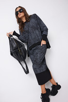 Начнём с полотна - невероятное мягкое двухслойное полотно с меховым изнаночным слоем, тёплое и тактильно очень комфортное. Свитшот свободного силуэта, рубашечного покроя с заниженной линией плеча, рукавом, расширенным в области оката, на притачной манжете, центральной застёжкой на тесьму-молнию и капюшоном с люверсами и отделочным шнуром. Полочка с прорезным карманом с листочкой. По низу изделия - притачной пояс.