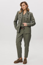 Этот стильный костюм — воплощение летней элегантности и комфорта. Модель выполнена из вискозной ткани с эффектом жатки, что не только актуально в этом сезоне, но и крайне практично: одежда меньше мнется и сохраняет безупречный вид в течение всего дня.