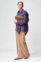 Костюм женский изготовлен из трикотажной ткани.Низ жакета, рукава и край борта обработан довязом. Жакет имеет v-образный вырез. Застёгивается на четыре петли пуговицы.