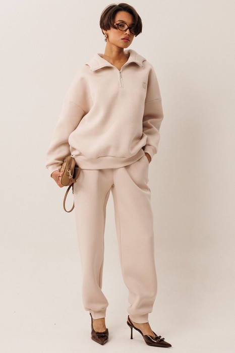 " Этот спортивный костюм от GOwear отлично подойдет для дома, прогулок, путешествий и отдыха. Сделан из теплой, комфортной ткани. Состоит из джемпера и брюк. Джемпер имеет двойной капюшон и короткую застежку - молнию черного контрастного цвета по центру переда. На переде с левой стороны выполнена вышивка в цвет ткани. Джемпер имеет прямой силуэт. Низ джемпера и манжеты выполнены из кашкорсе. Брюки зауженные к низу с притачным поясом (резинка и шнурок внутри). Брюки с боковыми карманами. По низу брюк – манжеты.