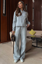Классический женский спортивный костюм состоит из худи на застёжке-молнии и брюк на манжетах. Всесезонная ткань сделает его любимым в Вашем гардеробе как для дома, так и улицы.